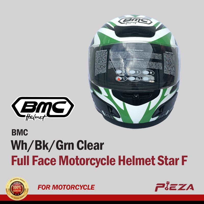 BMC Full Face Motorcycle Helmets Star WH/BK/GRN Clear