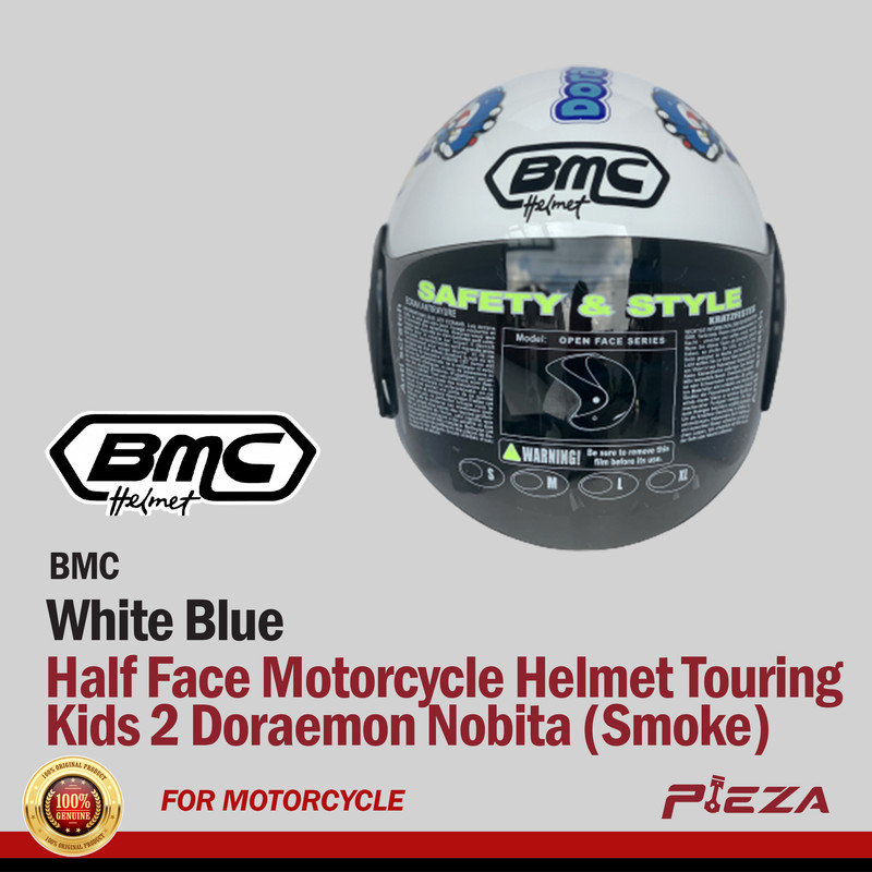BMC Half Face Motorcycle Helmets Touring Kids 2 Doreamon Nobita (Smoke) White Blue